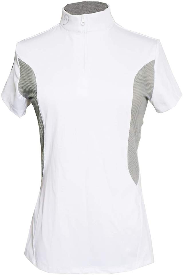 Camiseta de equitación personalizada para mujer, capa base transpirable de secado rápido, licra/poliéster, top profesional para espectáculos ecuestres, proveedor OEM