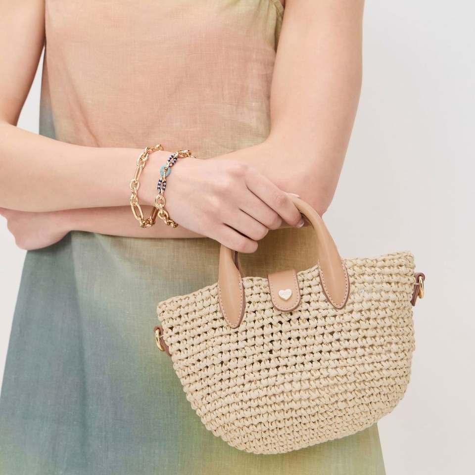 Bolsos de paja personalizados para mujer, bolso tote de playa para primavera/verano, bolso de hombro tejido, bolso de mano con ribete de cuero de rafia, mini bolso tipo cubo con bordado.