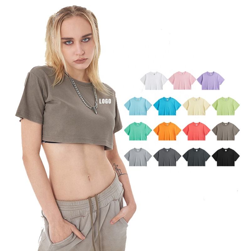Top corto personalizado para mujer para el verano, Camiseta corta rentable para mujer, Top corto de manga corta de gran tamaño, camiseta para mujer 2025