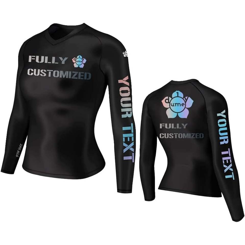 Camiseta Deportiva de Compresión Personalizable para Mujer, Estilo Rashguard Largo, Fabricada con Nailon y Elastano