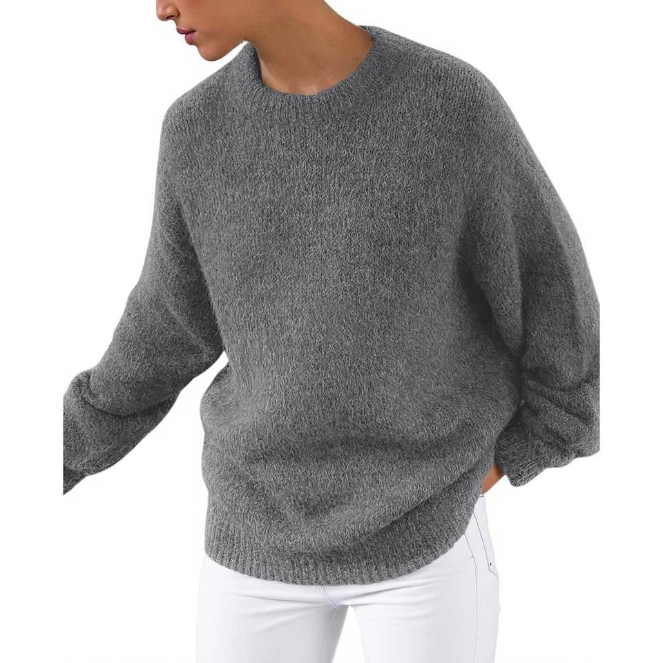 Suéter Holgado de Punto Grueso para Mujer, Estilo Informal, Cuello Redondo, Manga Larga, con Logotipo en la Parte Delantera