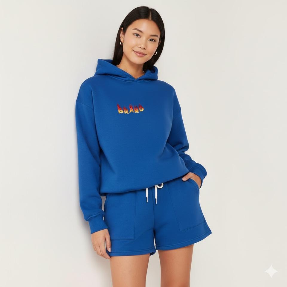 Conjunto de Sudadera con Capucha de Algodón 100% para Mujer, Diseño Sólido, Tejido de Punto, Top Largo Informal y Pantalones Cortos Deportivos para Conjuntos de Invierno