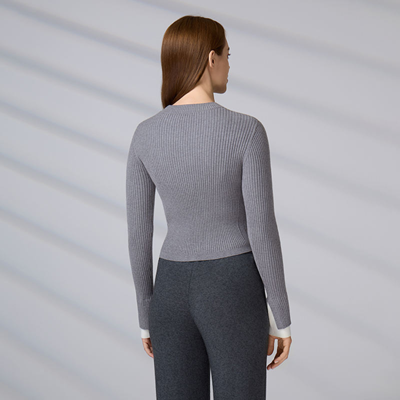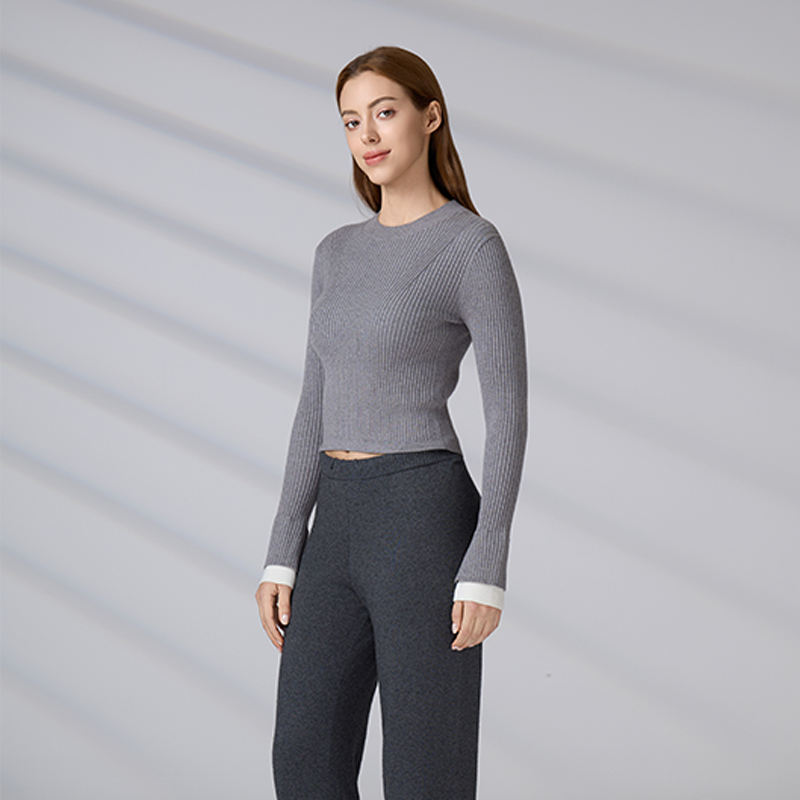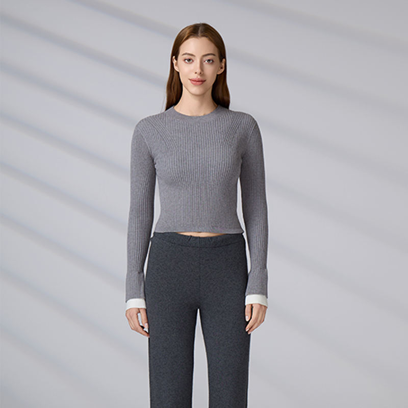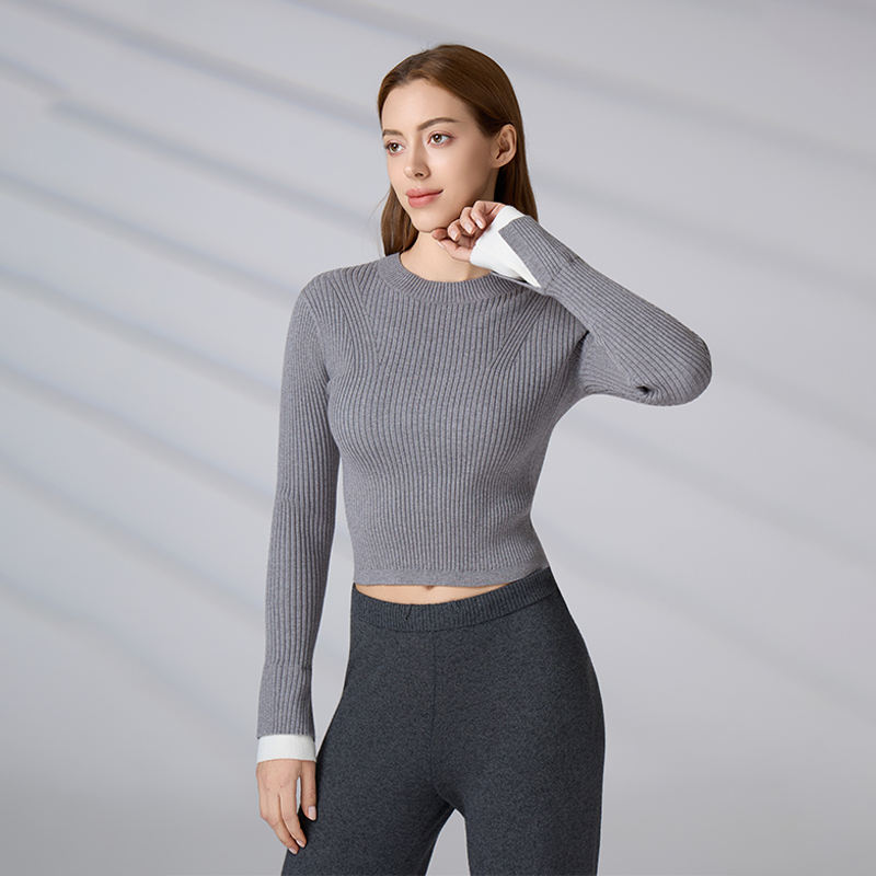 Suéter de punto acanalado personalizado para mujer, top corto informal ajustado, jersey de manga larga con cuello redondo para otoño e invierno