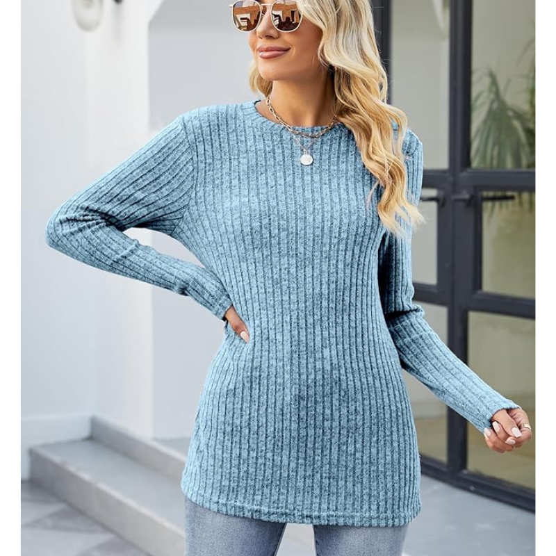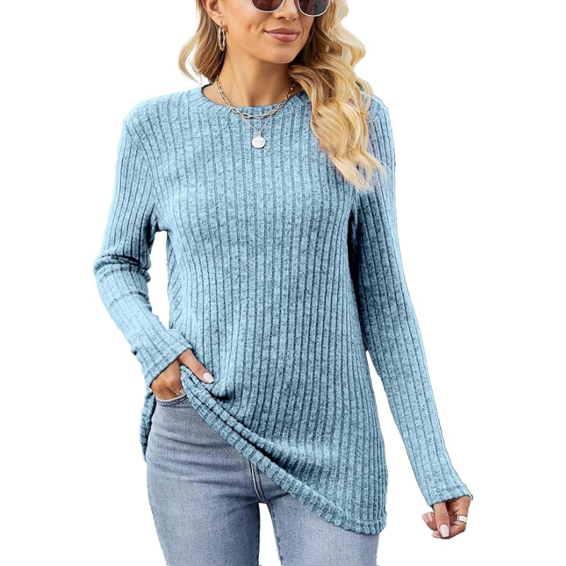 Suéter de punto acanalado personalizado para Mujer | Top de Jersey de manga larga con diseño elegante de patrón en V para ropa informal de otoño e invierno