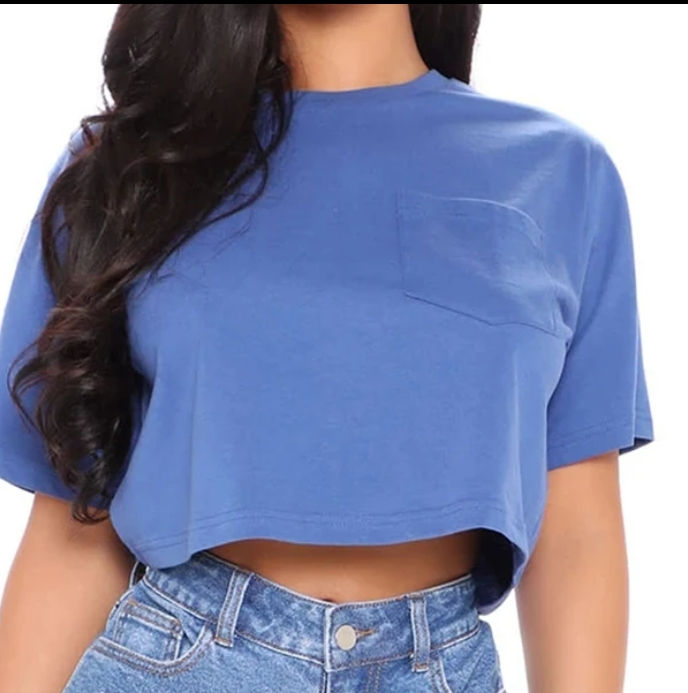Camiseta corta holgada de cuello redondo Sexy para mujer, camisetas de manga corta de algodón orgánico 100% con bolsillo a la moda para el verano