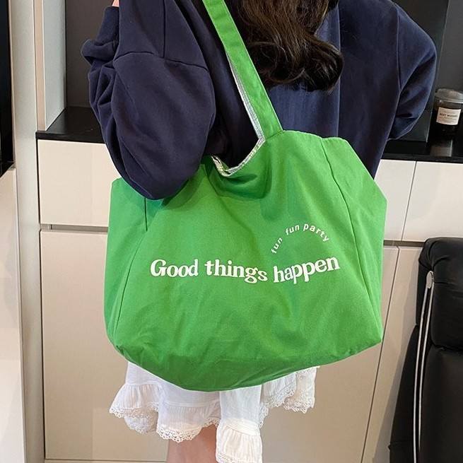 Bolso de lona a rayas para mujer, bolso de hombro con letras de doble capa, bolso de compras ecológico de gran capacidad