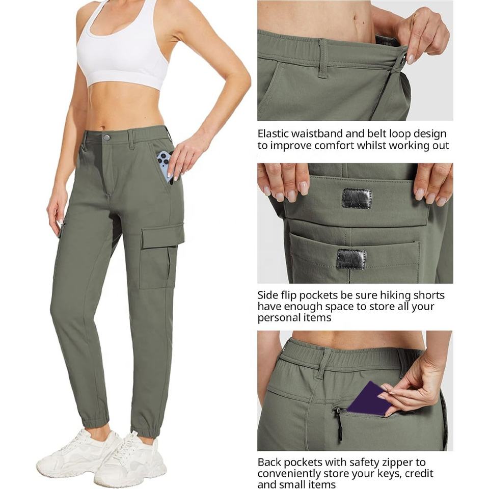 Pantalones Cargo personalizados de ajuste cónico para mujer con logotipo de marca Diseño multibolsillo Materiales duraderos Cintura ajustable