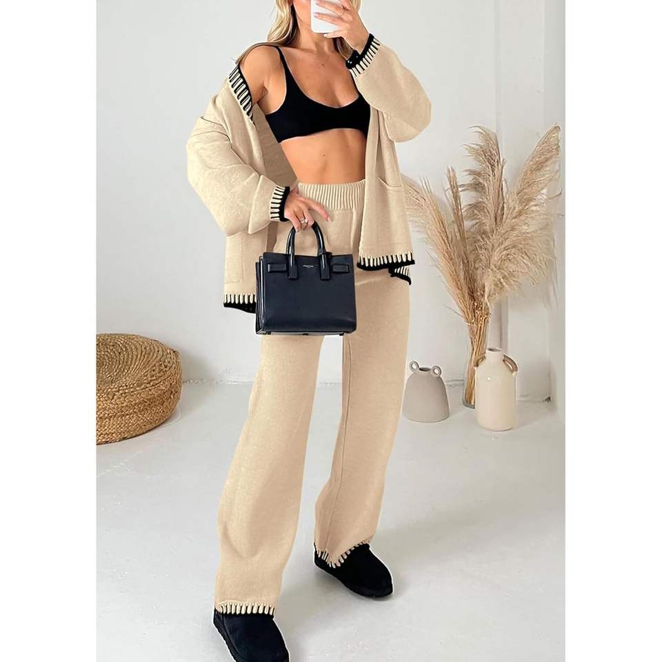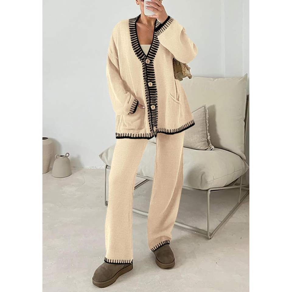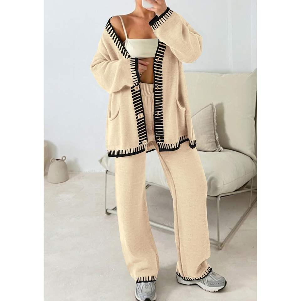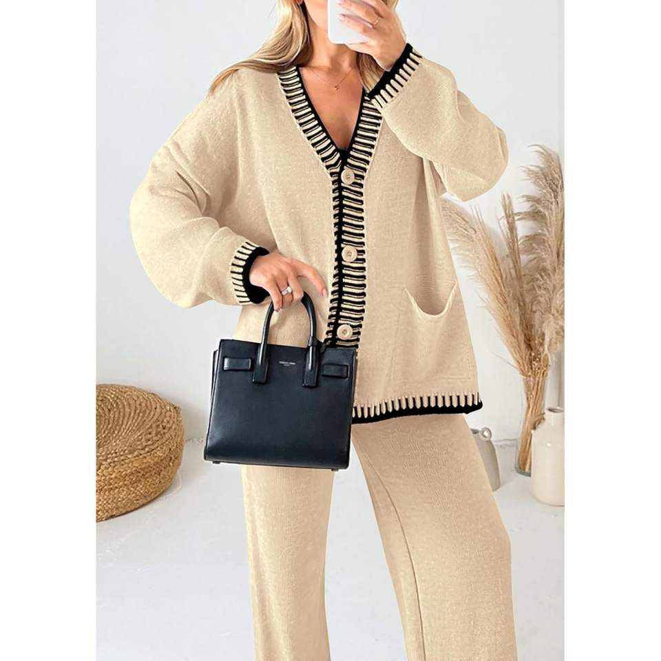 Conjuntos de 2 Piezas Personalizados para Mujer, Talla XS, Suéter Cárdigan de Manga Larga con Cuello en V, Pantalones Anchos a Juego, Conjuntos Deportivos