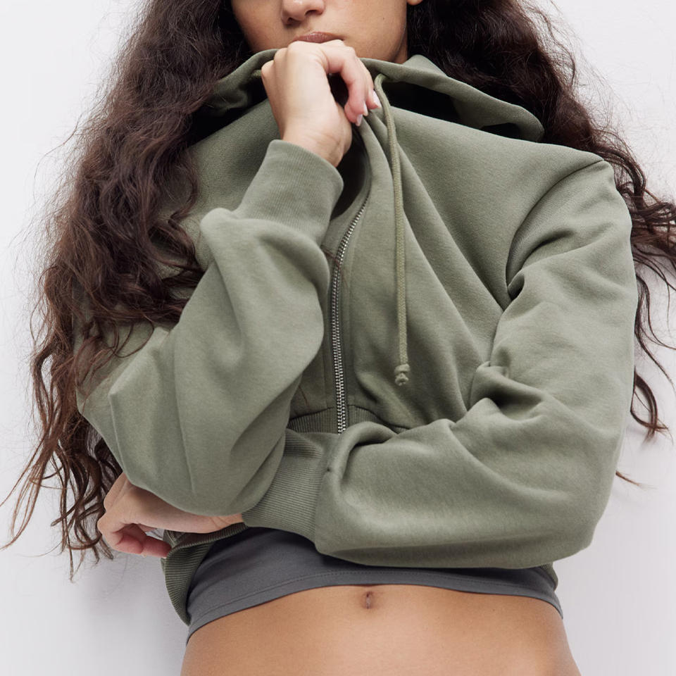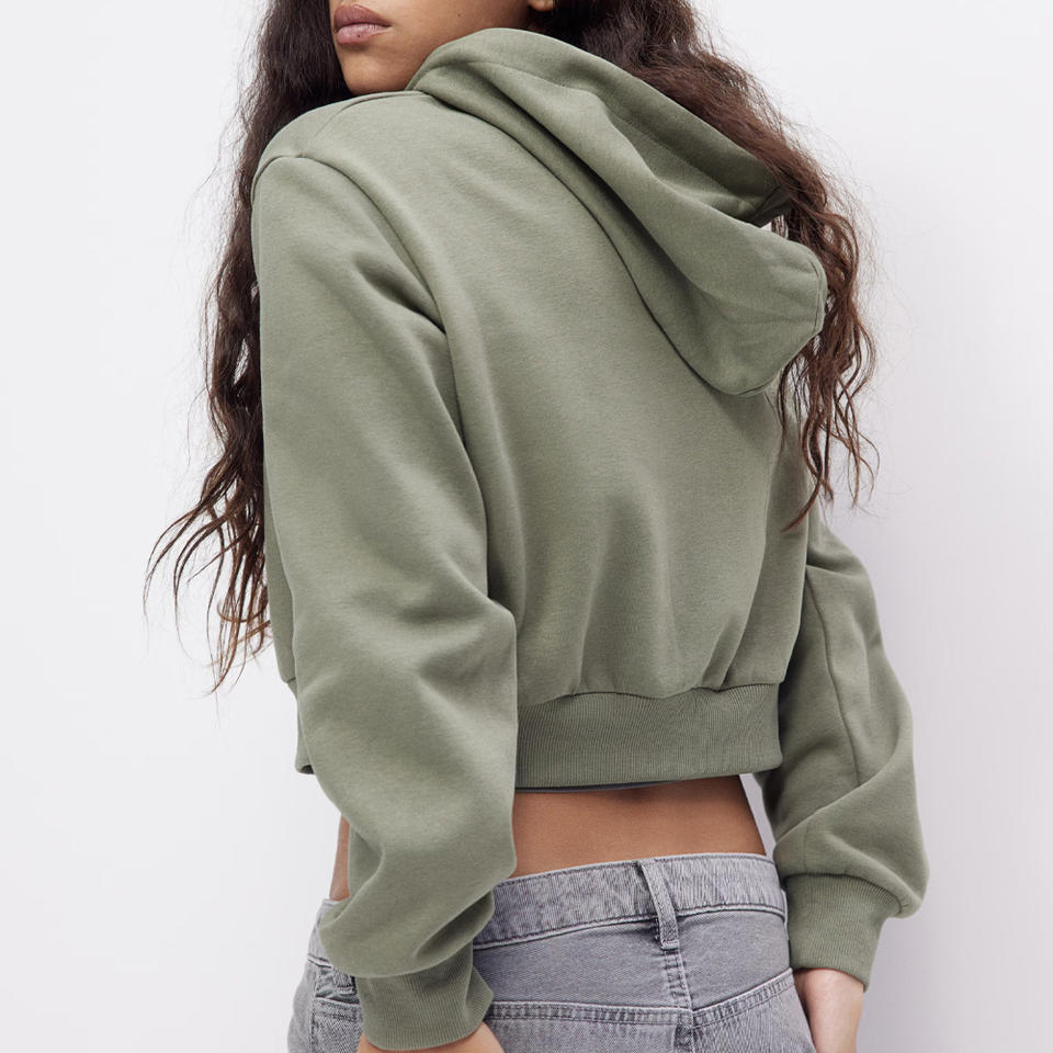 Sudaderas con capucha recortadas personalizadas para mujer Sudaderas elegantes de longitud corta con opciones de impresión de logotipo Perfectas para ropa de calle informal