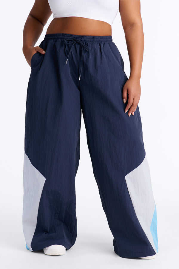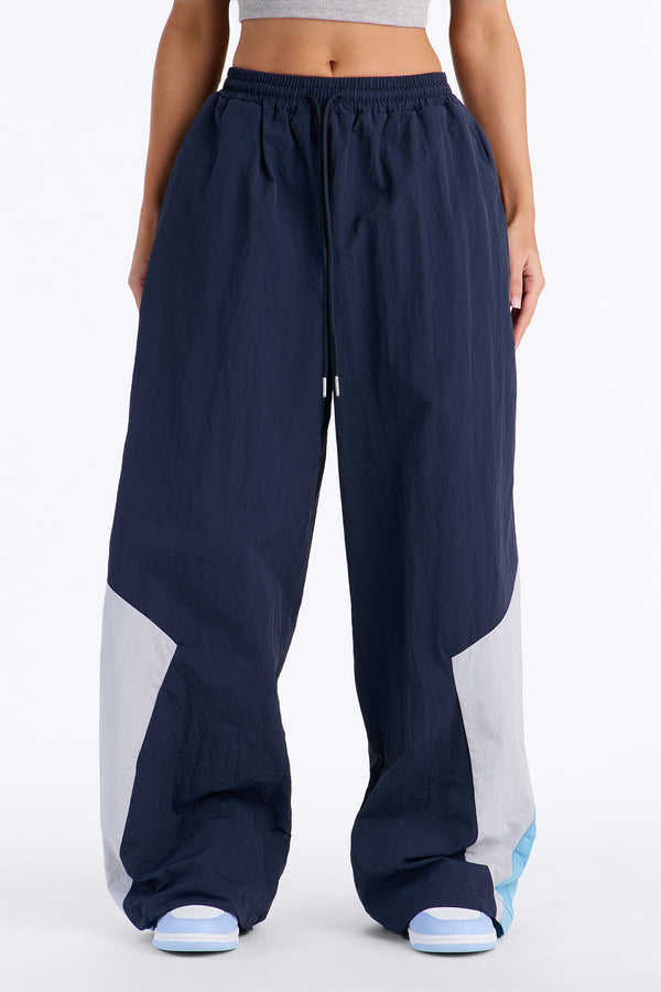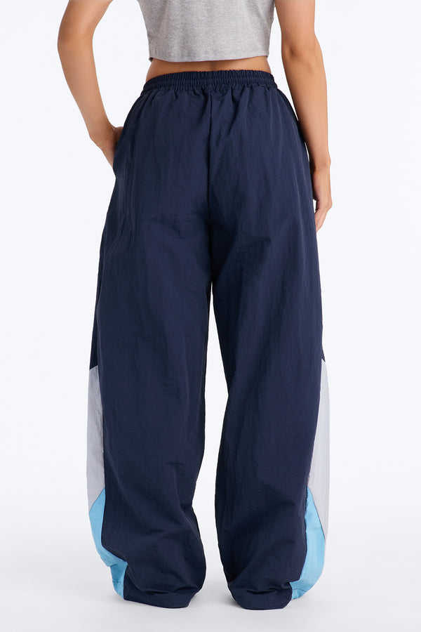 Pantalones Parachute de Pierna Ancha con Bloques de Color para Mujer, con Cordón Ajustable, Estilo Casual Urbano, OEM, Marca Privada, Pantalones para Hombre