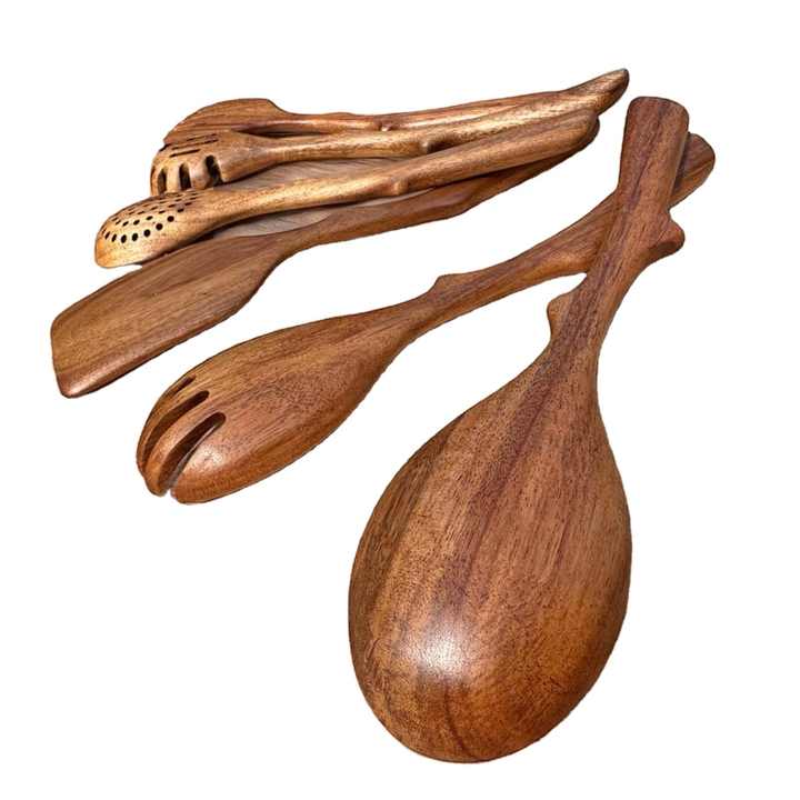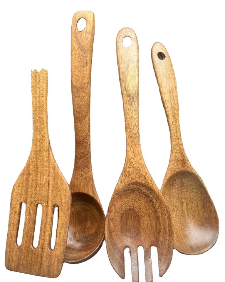 Utensilios de madera personalizados logotipo grabado con láser Acacia nogal ceniza Pino utensilios de cocina vajilla café utensilios de cocina