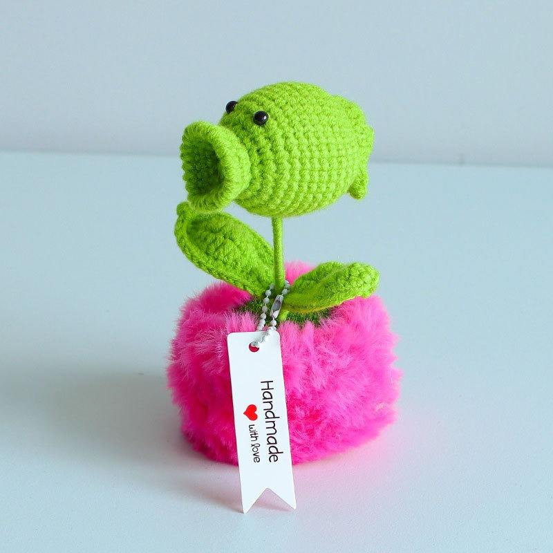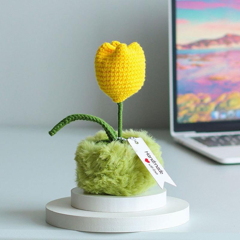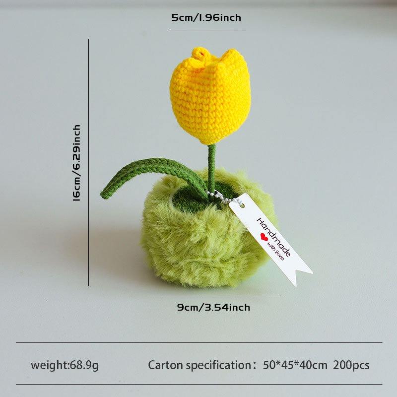 Flor de lana personalizada, flor simulada tejida a mano, tulipán en maceta naranja, flor eterna, adorno de regalo de alta gama para ocasiones festivas y negocios.