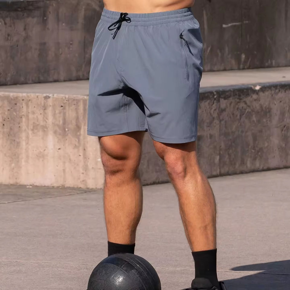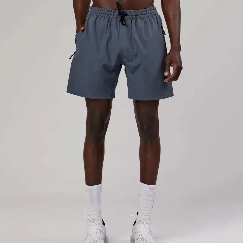 Pantalones Cortos Deportivos Personalizados para Hombre, de Poliéster, con Bolsillos con Cremallera, Impermeables, Color Gris