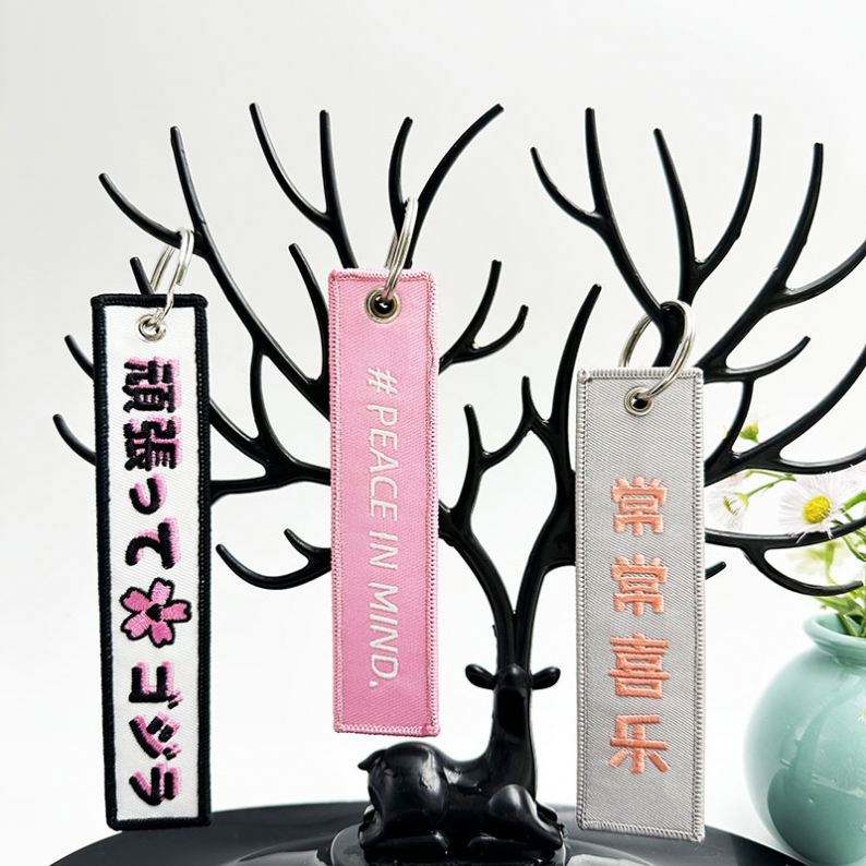 Llavero de tela tejida personalizada con bordado, etiquetas para llaves, accesorios personalizables