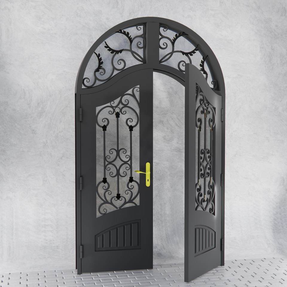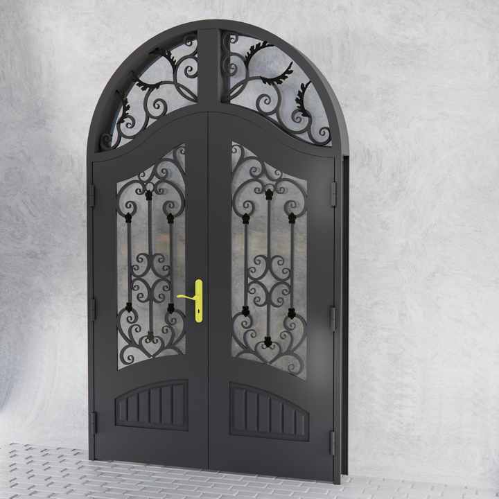 Puerta de Entrada de Hierro Forjado Personalizada, Puerta Interior de Acero, Puertas de Entrada Estilo Francés, Duraderas con Recubrimiento en Polvo, Diseño Elegante