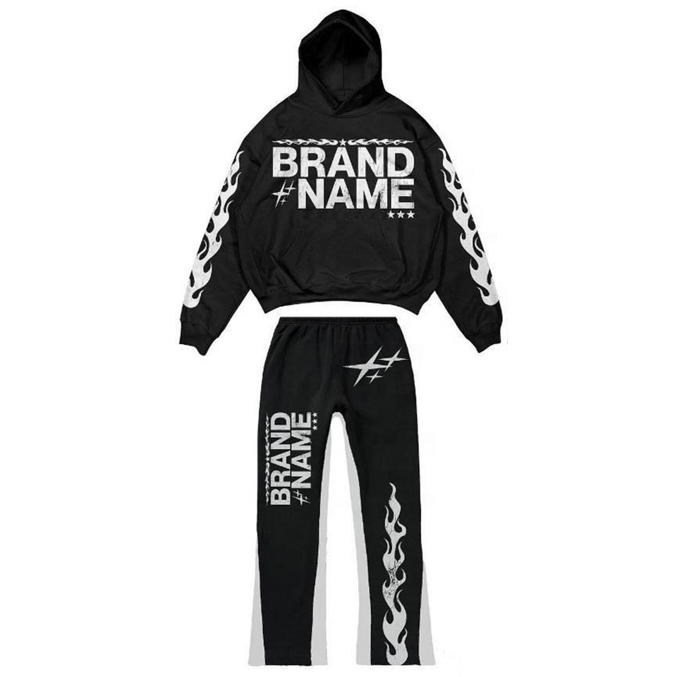 Conjunto Deportivo Personalizado Y2K con Estampado Puff para Hombre, Sudadera con Capucha Hip Hop, Pantalones Acampanados, Estilo Urbano Vintage, Ropa de Invierno