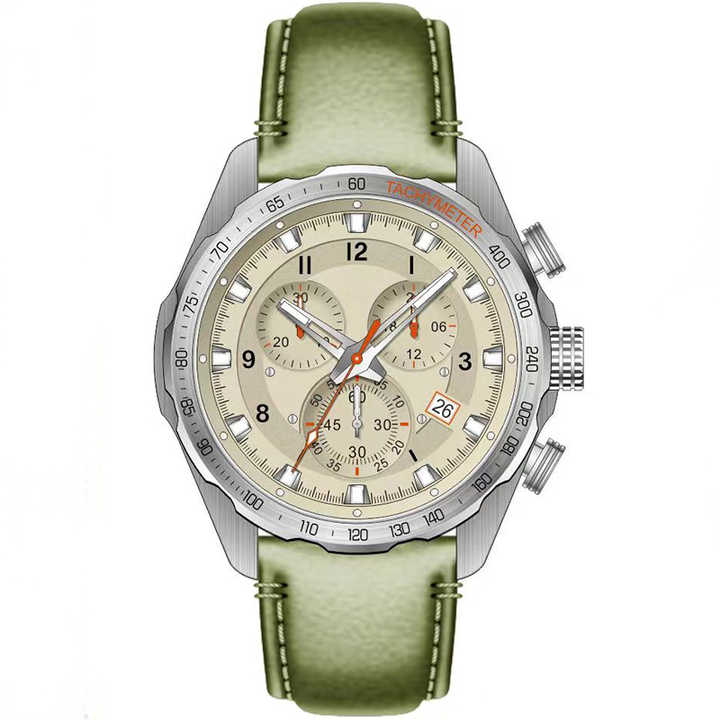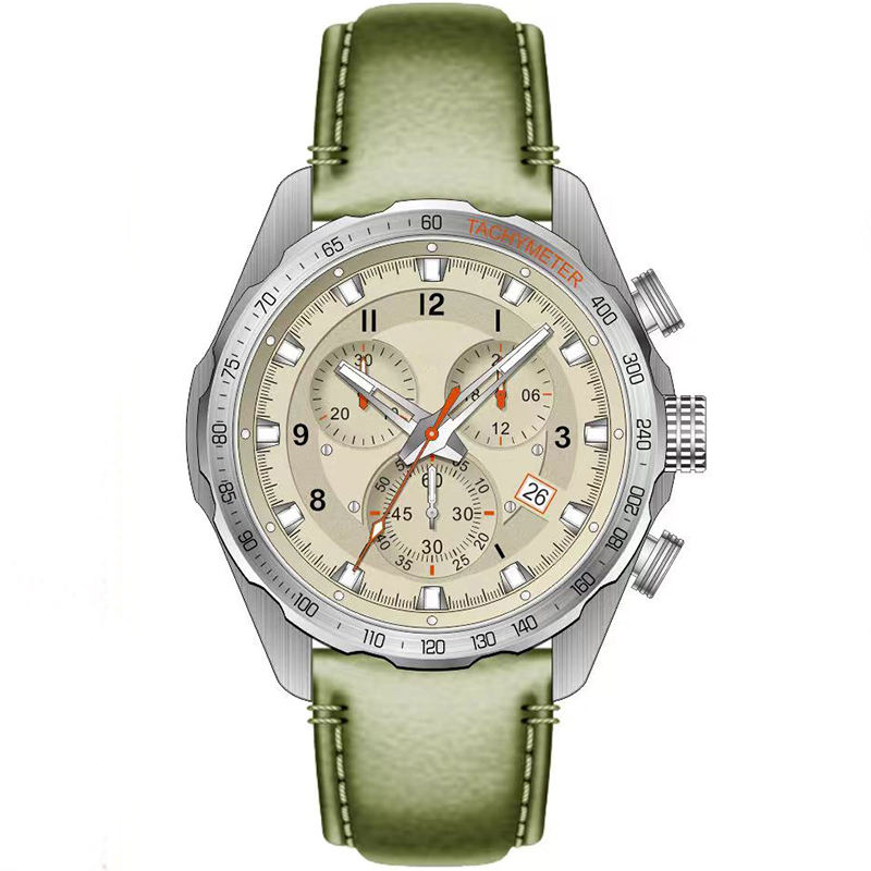 Nombre del producto:Reloj cronógrafo dorado con correa de cuero verde