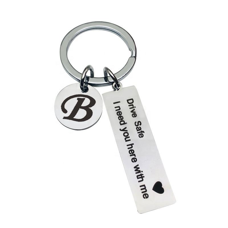 Llavero Personalizado de Acero Inoxidable con Forma 3D, Duradero, Plateado, con la Frase 'Drive Safe I Need You Here with Me'