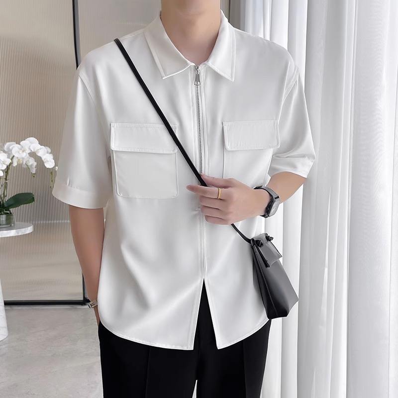 Camisas de Hombre Personalizadas con su Propio Logotipo, Tejidas, ODM, Moda de Verano, Cuello Solapa, Media Cremallera, Doble Bolsillo, Corte Regular, Estilo Casual