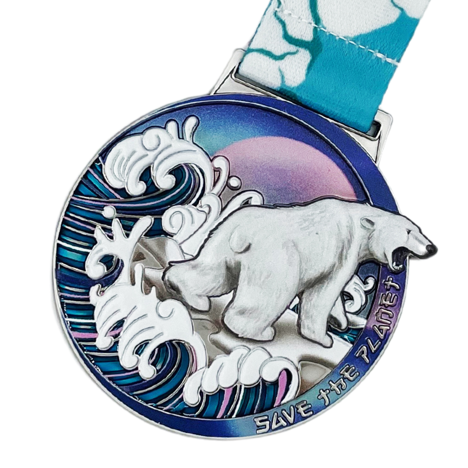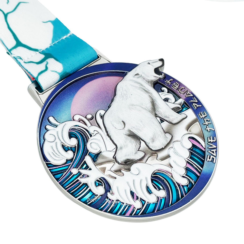 Medalla personalizada de aleación de Zinc, medalla con estampado 3D UV colorida, respetuosa con el medio ambiente