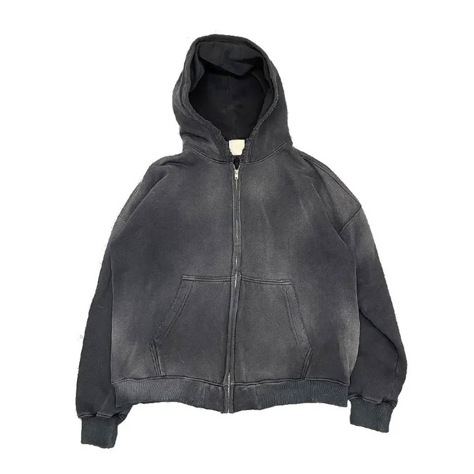 Sudaderas con capucha con cremallera personalizadas para hombre, Sudadera con capucha de lavado ácido de fábrica de siguiente nivel de lana de algodón suave liso de alta calidad