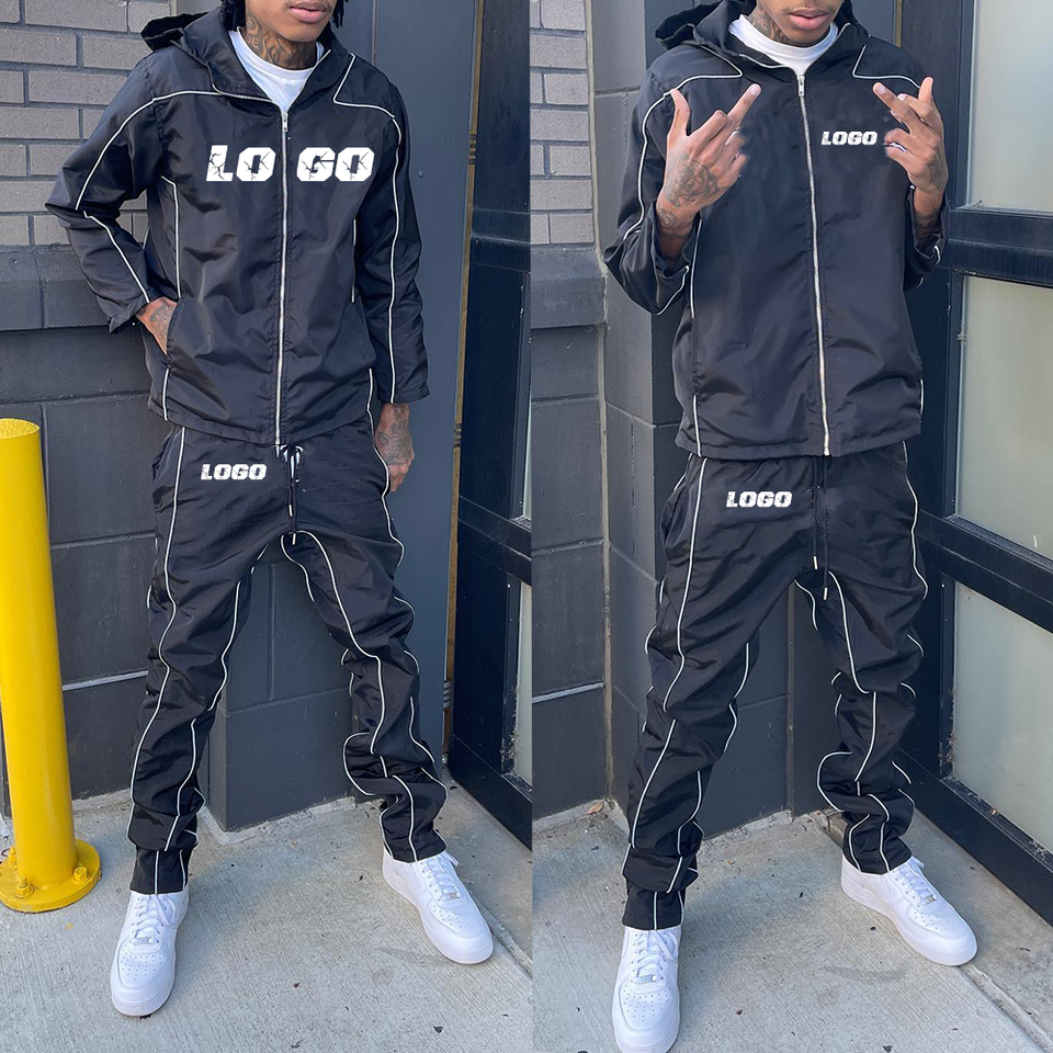 Conjuntos Deportivos de 2 Piezas Personalizados para Hombre con Cremallera, Pantalones de Nylon y Sudadera con Capucha, Trajes Deportivos Holgados, Conjunto Deportivo Cortavientos Personalizable para Hombre