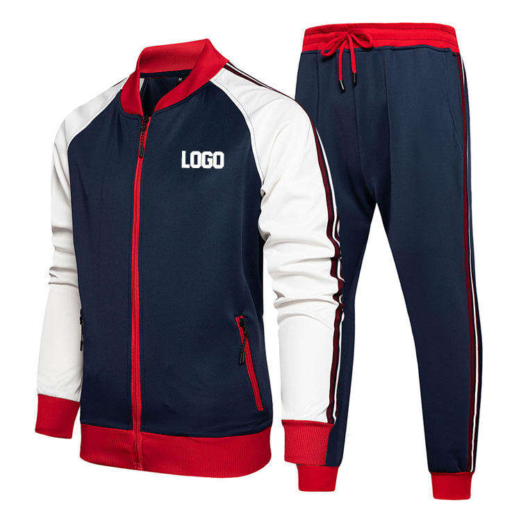 Conjunto de 2 Piezas de Pantalones Deportivos Suaves con Cremallera Personalizada para Hombre, Puños Elásticos con Ribete, Chaqueta Deportiva Unisex con Capucha de Poliéster/Algodón, Cortavientos Sólido