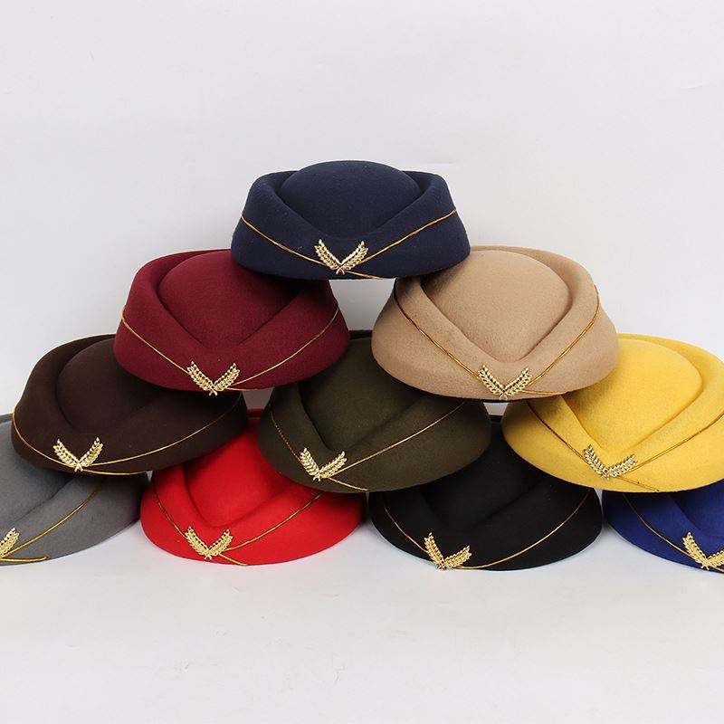 Personalizado avión vuelo disfraz Cosplay carrera azafata etiqueta anfitriona asistente boina sombrero