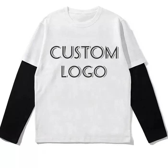 Camiseta de manga larga de doble capa en blanco personalizada unisex 2 en 1 camiseta de manga larga de doble capa
