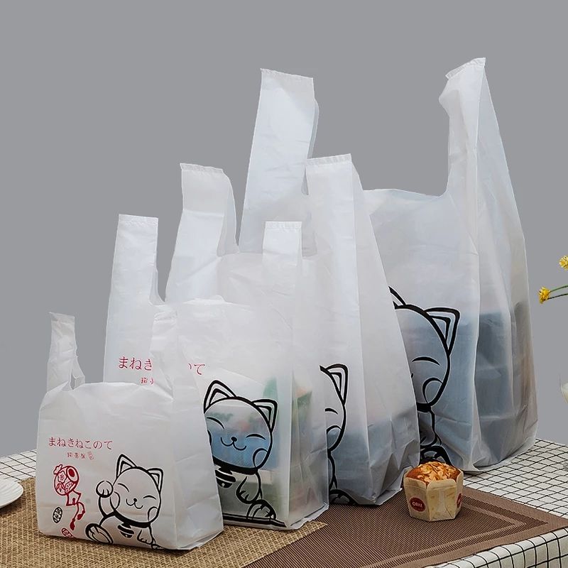Patrón de dibujos animados personalizado camiseta supermercado comida para llevar bolsas de plástico de grado alimenticio para pan