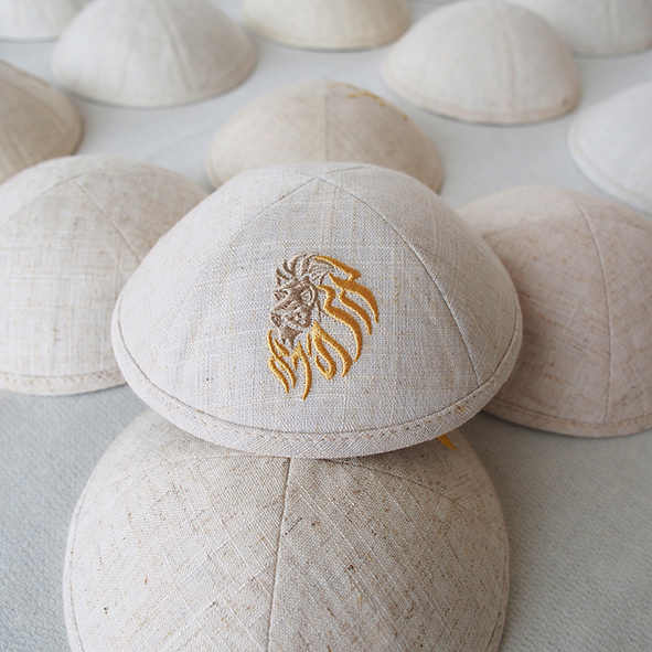 Kippah de lino bordado de color personalizado, Ahava judía, se puede personalizar para bodas y Barbat Mitzvahs, Yarmulke de regalo judío