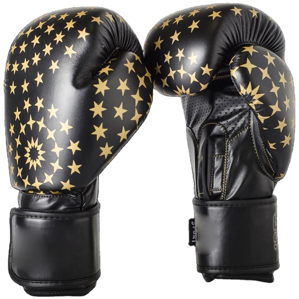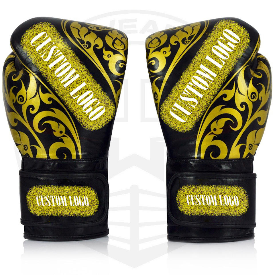 Guantes de boxeo de cuero PU con estampado de diseño personalizado, alta calidad, venta al por mayor, guantes de boxeo de cuero