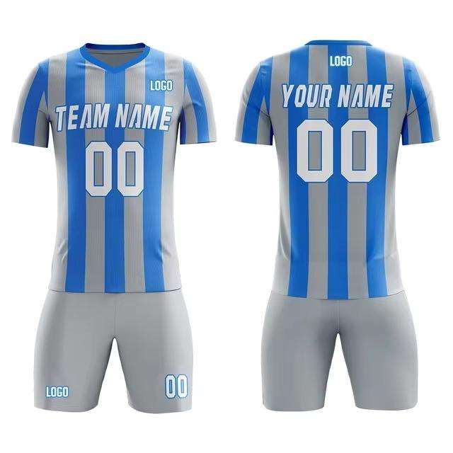 Conjunto de Uniforme de Fútbol Personalizado para Hombre, Camiseta y Pantalones Cortos Transpirables de Secado Rápido, Azul y Negro, Uniforme de Entrenamiento Ligero para Otoño