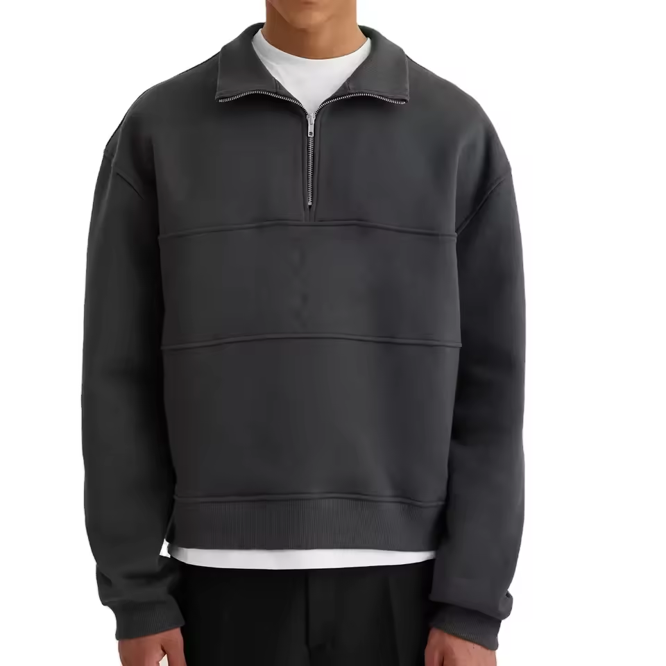 Sudadera con capucha de empalme de algodón pesado personalizada sudaderas con capucha cuadradas recortadas de rizo francés de gran tamaño 14 Zip Metal media cremallera sudadera hombres