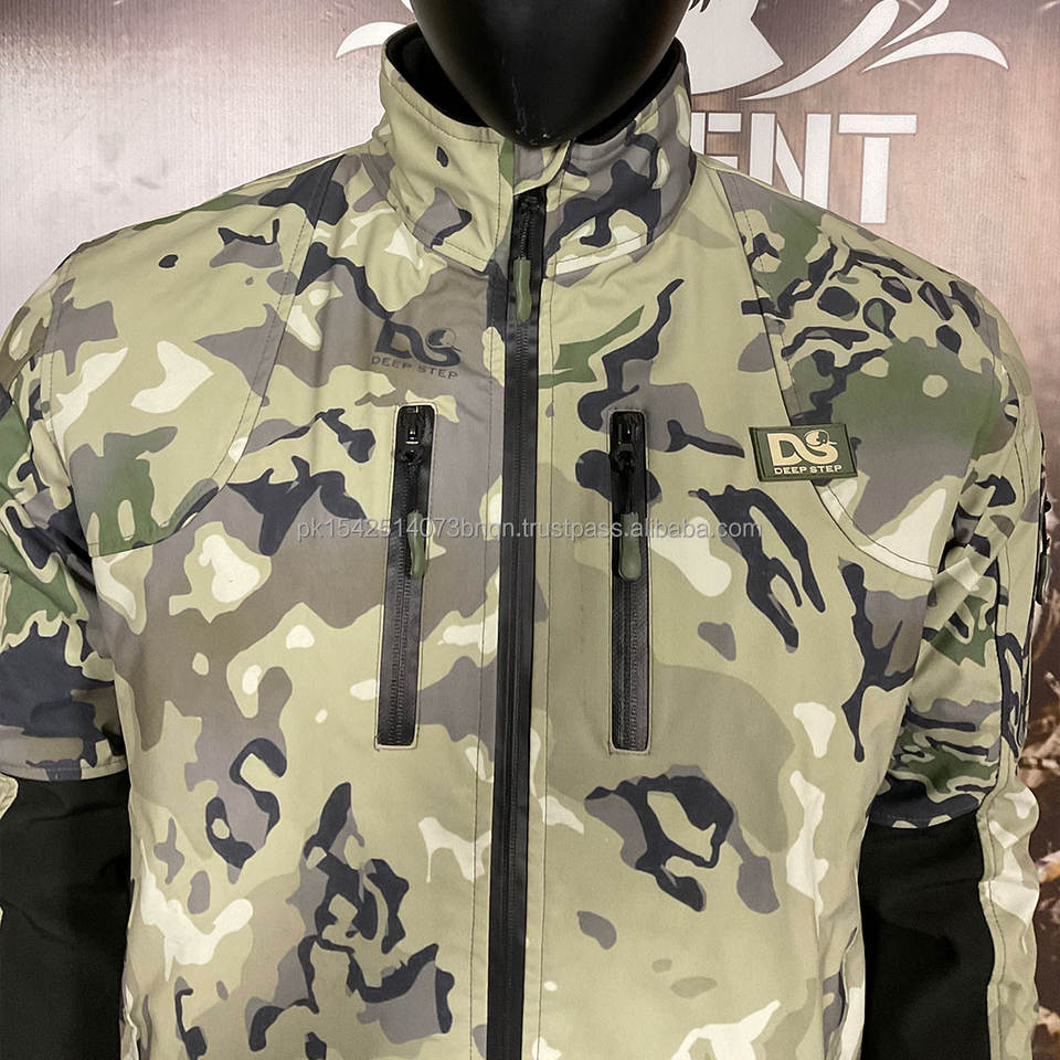 Chaqueta Táctica de Caza de Alta Calidad, Softshell, para Exteriores, con Capucha, Cierre Frontal, Forro de Microfelpa, Mangas de Mariposa - EQUIPO DE CAZA