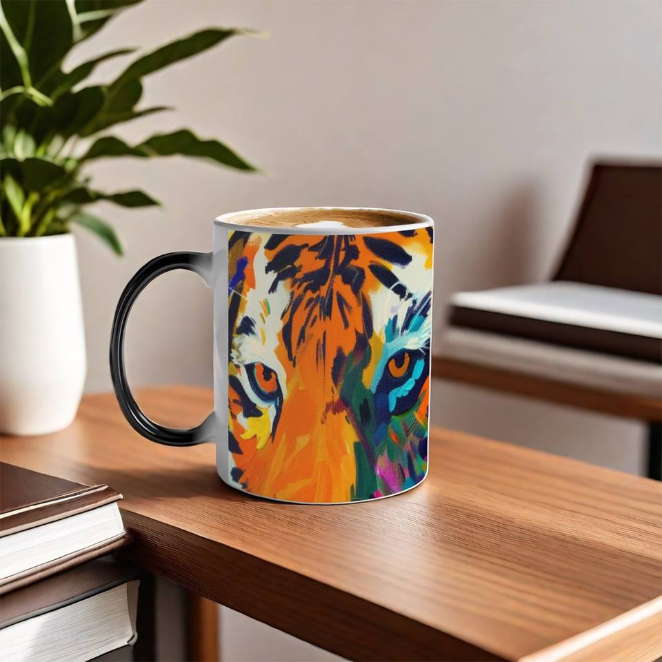 Taza mágica que cambia de Color con imagen personalizada de 11oz, diseño Simple, sublimación, revestimiento sensible al calor en blanco, almacenada con tapa
