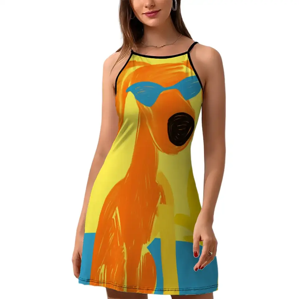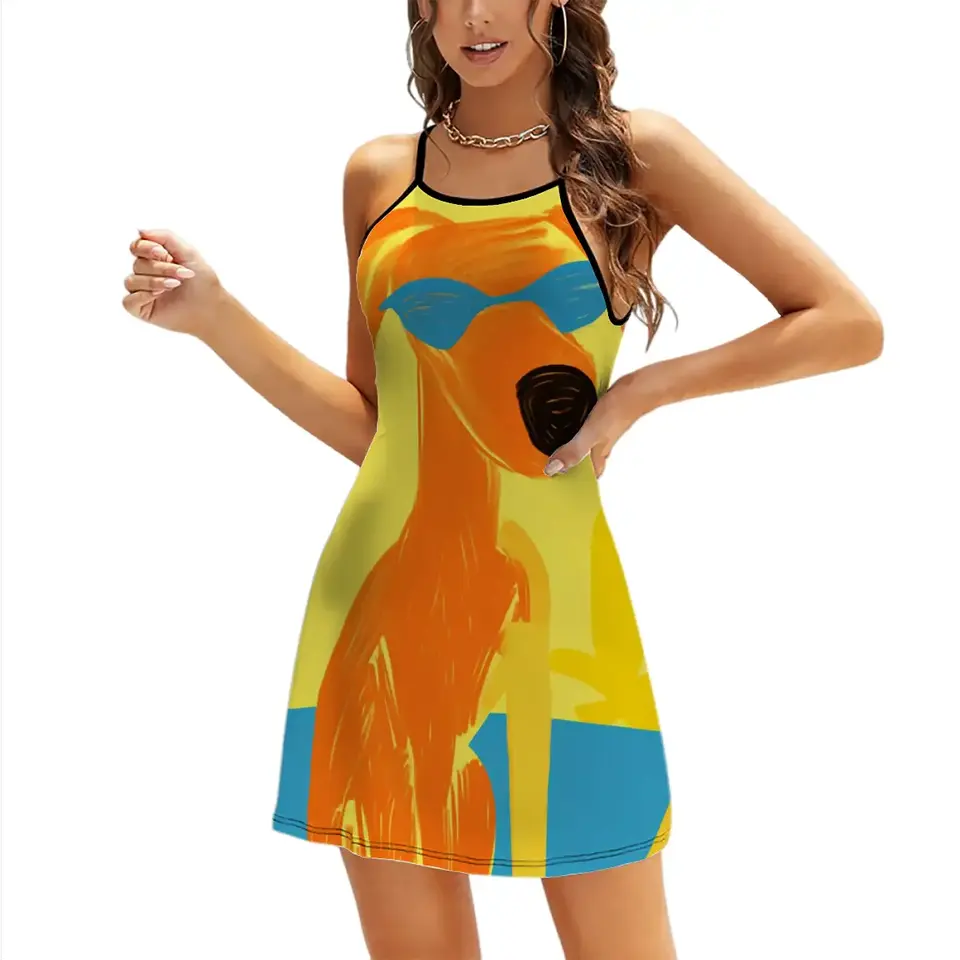 Vestido corto XXL con tirantes finos y imagen personalizada para mujer, ropa de calle Sexy informal, estampado de patrones, tejido de punto con cintura y logotipo frontal para el verano