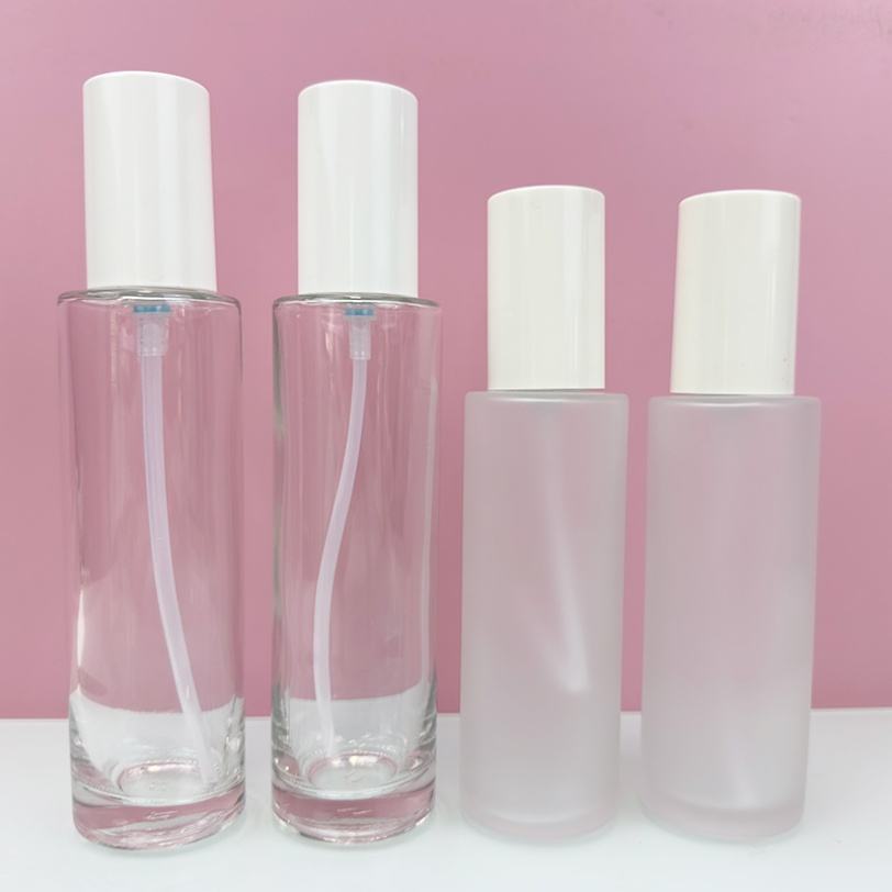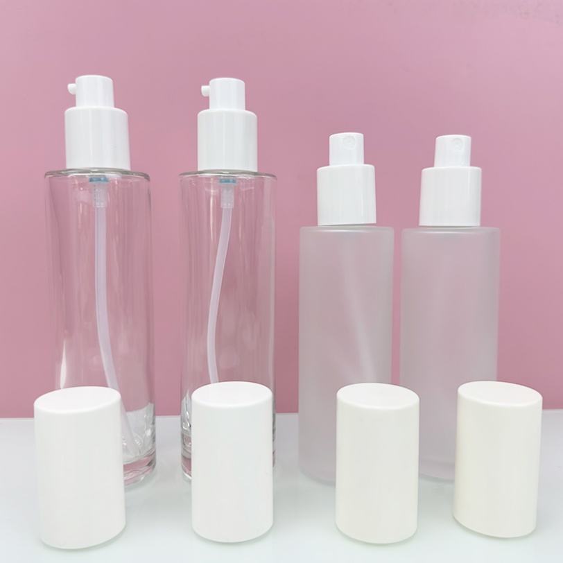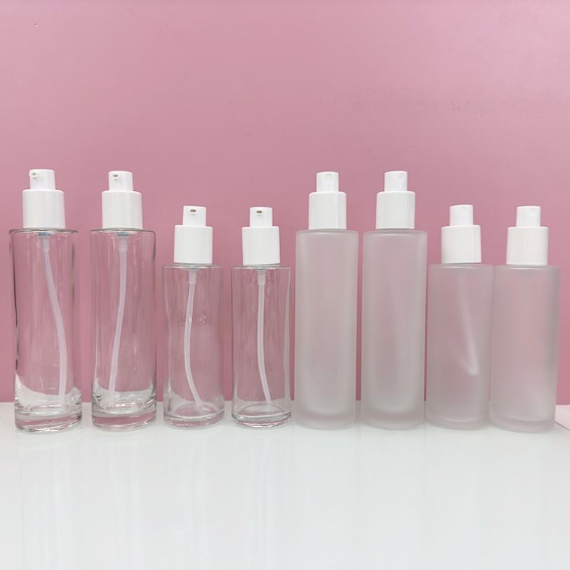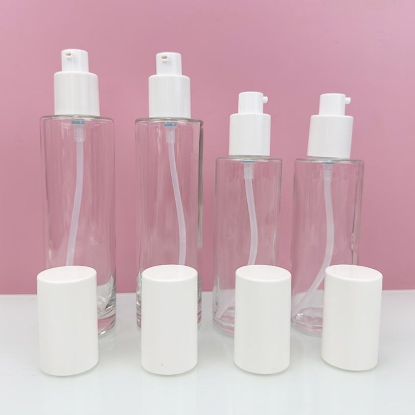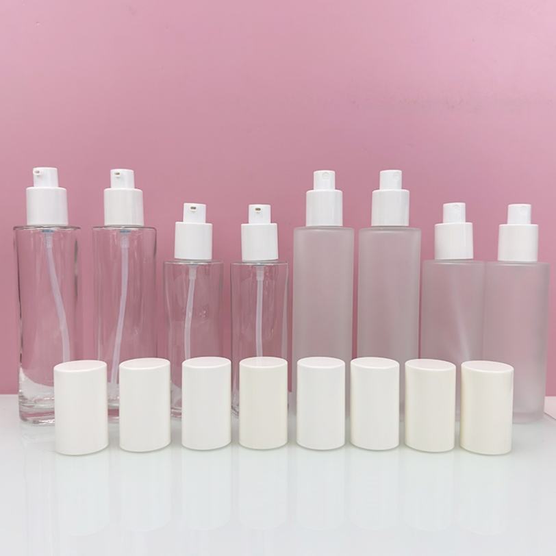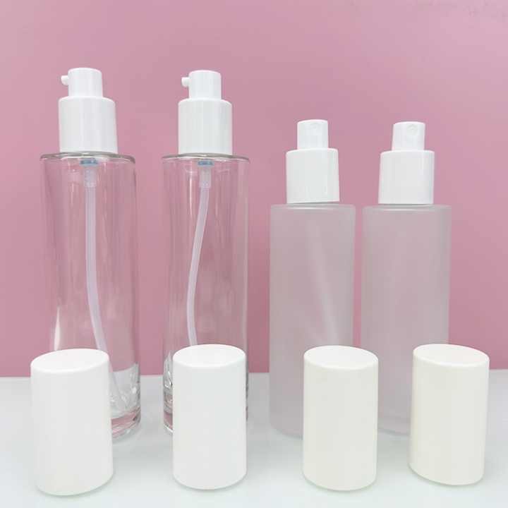 Envase de Vidrio Redondo de 20ml, 60ml, 100ml con Logotipo Personalizado para Productos de Cuidado de la Piel, Botella con Bomba para Lociones Cosméticas, Crema Facial y Sérum