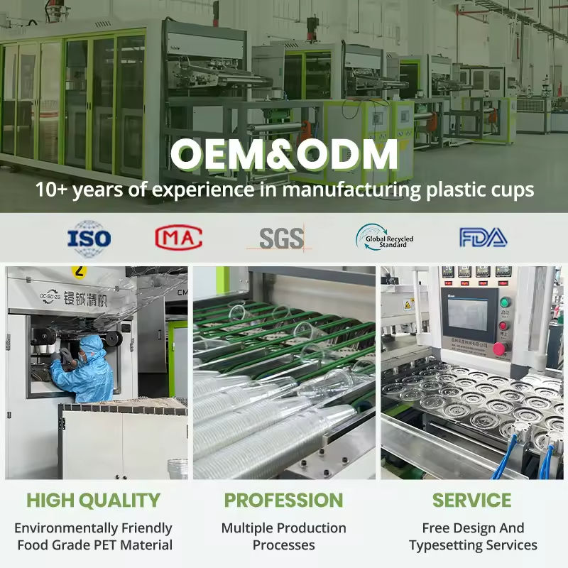 Vaso Desechable de Plástico PET Transparente en Forma de U de 90 mm y 16 Onzas con Tapa para Café, Boba, Matcha y Bebidas Heladas, con Logotipo Personalizado