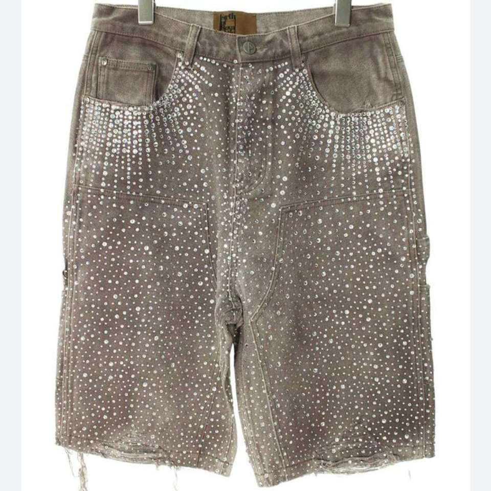 Shorts con pedrería y efecto deslavado ácido