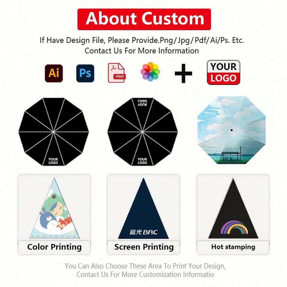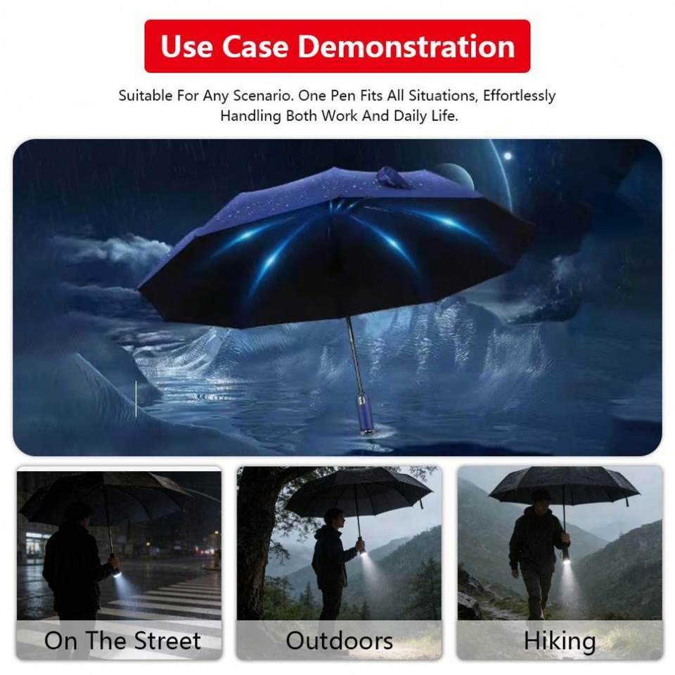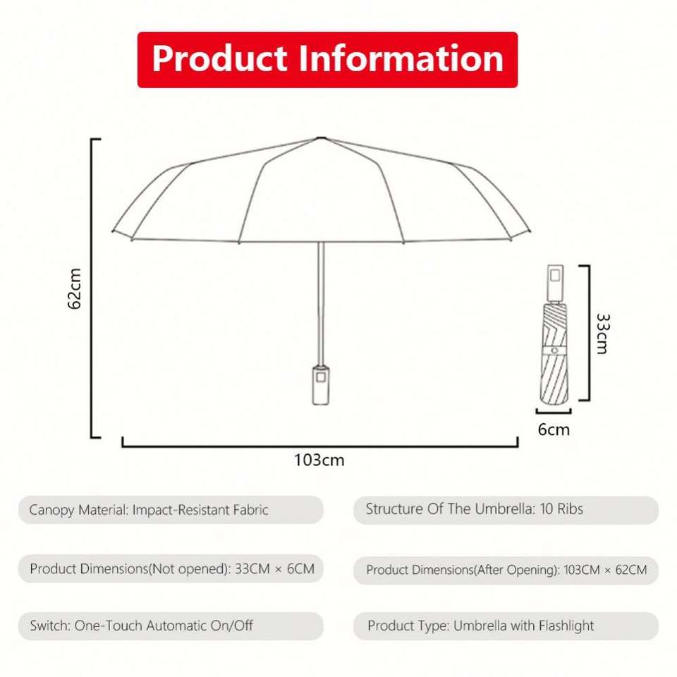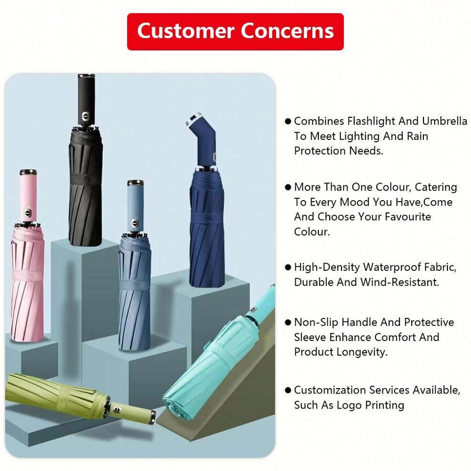 Sombrilla con Logotipo Personalizado, Protección Solar Automática, Sombrilla para Sol y Lluvia, Sombrilla Empresarial de Doble Uso con Linterna LED