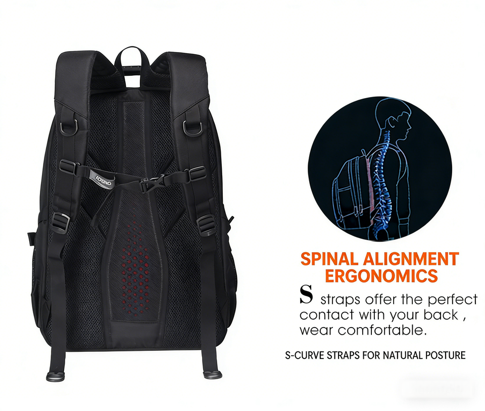 Mochila con logo personalizado para oficina y ordenador portátil, rucksack impermeable de viaje para hombre, negocios, color negro