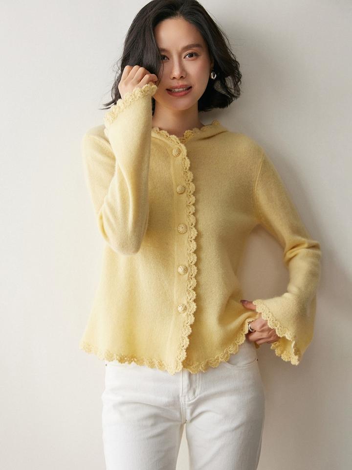 Cárdigan de Cachemira con Capucha y Logotipo Personalizado, Suéter Informal de Cachemira para Mujer, Venta Directa de Fábrica de Mongolia Interior