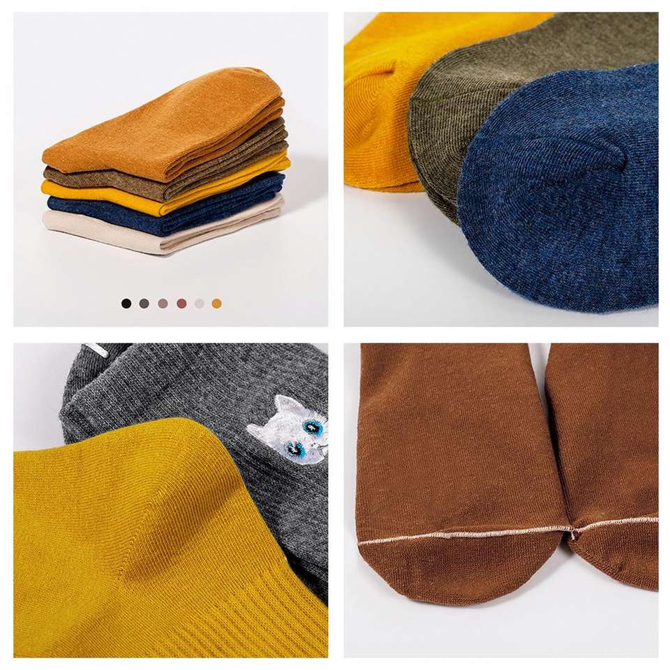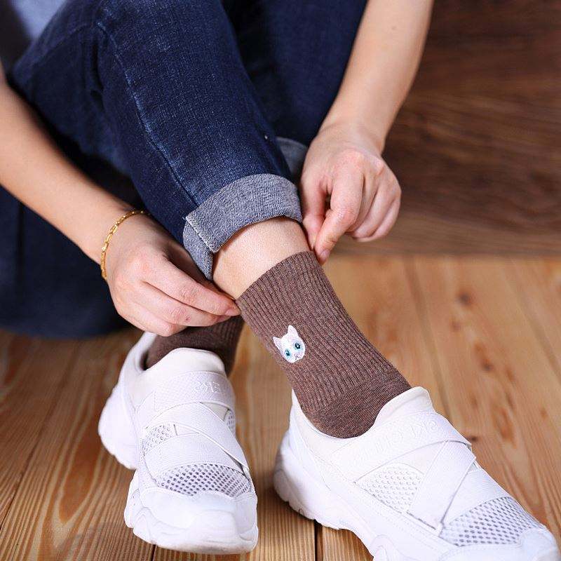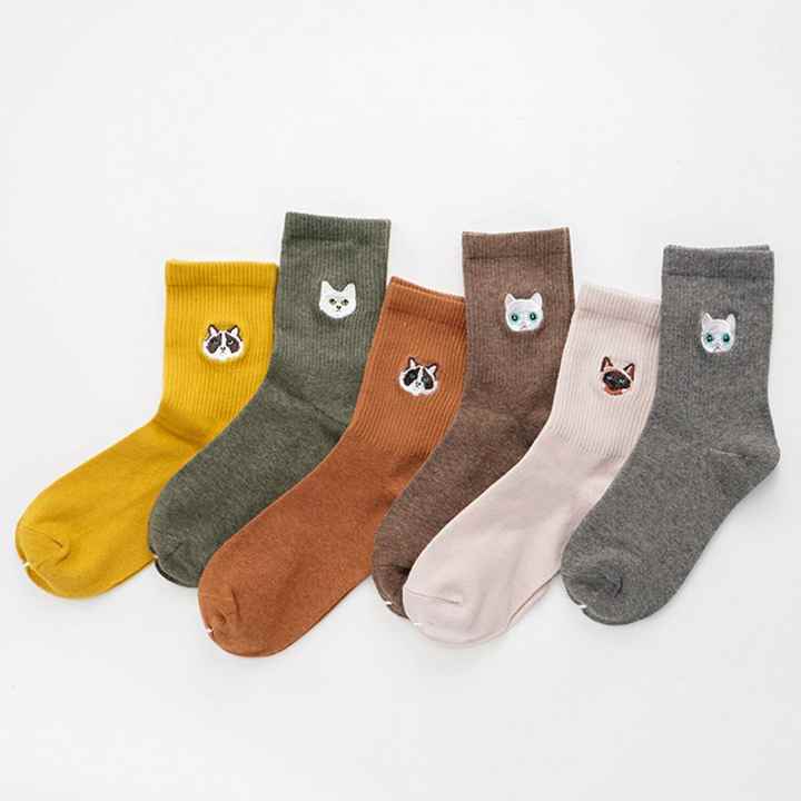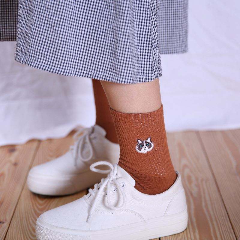 Nombre del producto:Calcetines de algodón lisos con bordado de gato, personalizados con logo para niñas y mujeres
