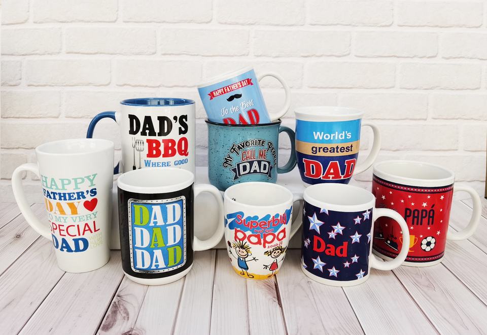 Tazas de café apilables de cerámica con logotipo personalizado, Juego de 4 tazas de San Valentín para el Día del Padre, pareja, corazón de amor