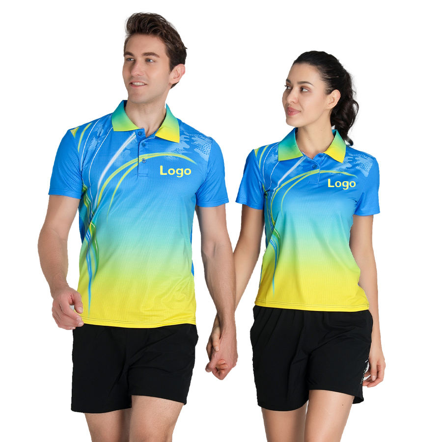 Logotipo personalizado estilo chino pareja deportes Ping-Pong pelota tenis camisa Polo Jersey puro algodón camiseta Polo