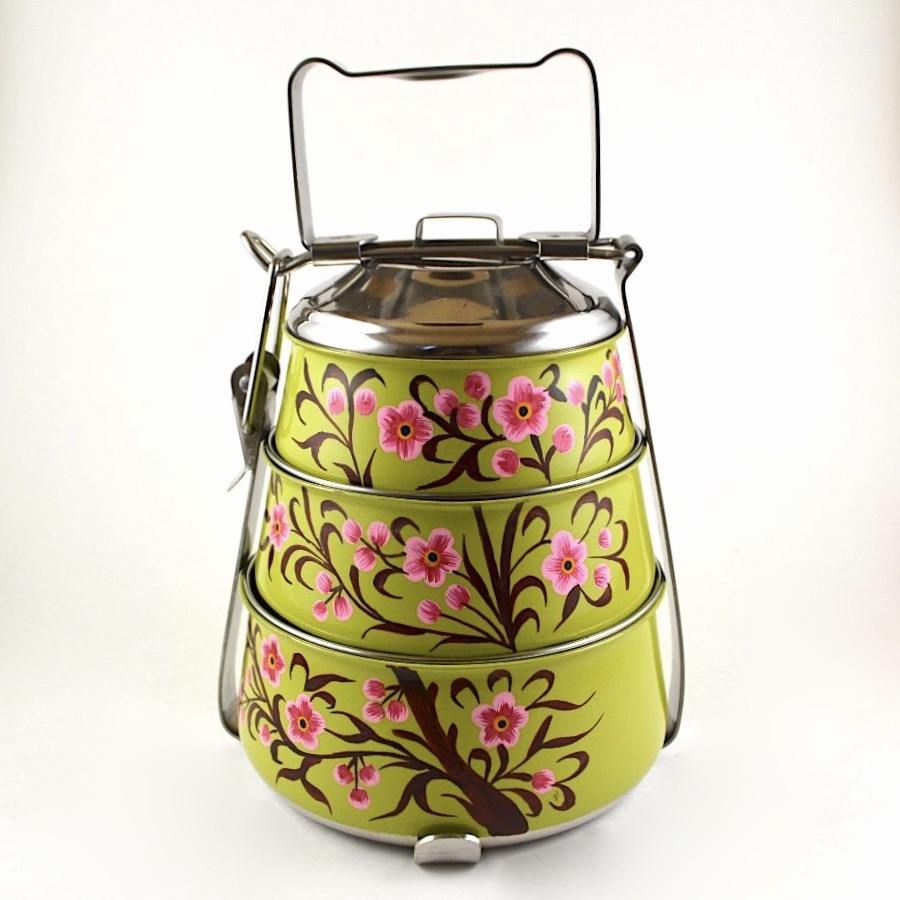 Color de logotipo personalizado Impresión de calcomanías termo de acero inoxidable 3 niveles almuerzo portador caja de tiffin