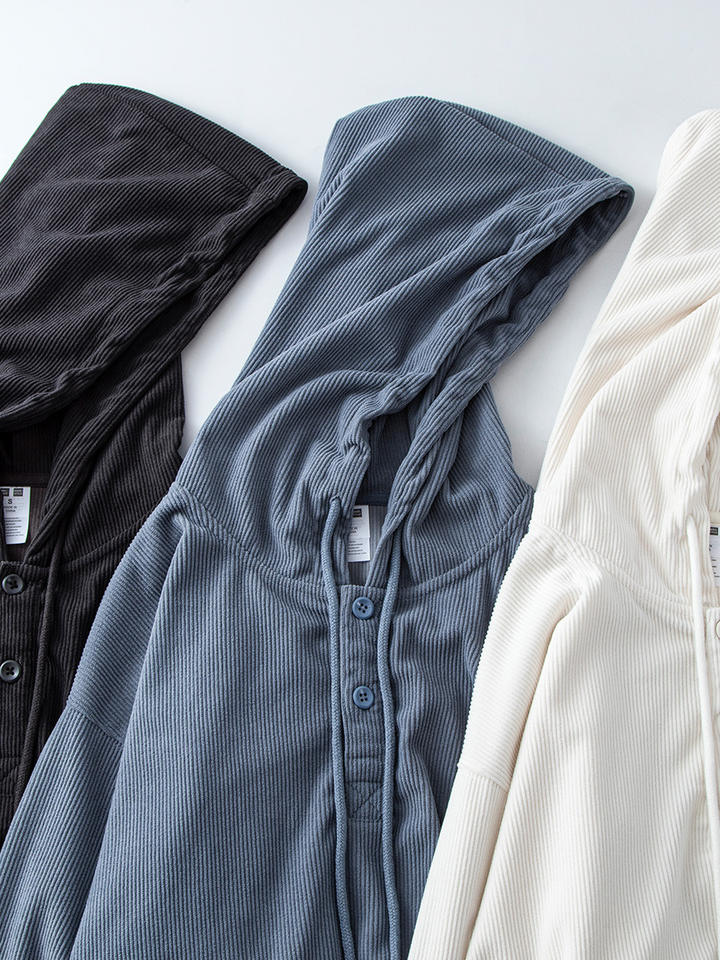 Sudadera con Capucha Personalizada con Logotipo, de Pana, Talla Grande, con 14 Botones en el Cuello, Bolsillo Grande y Cordón Ajustable para Hombre