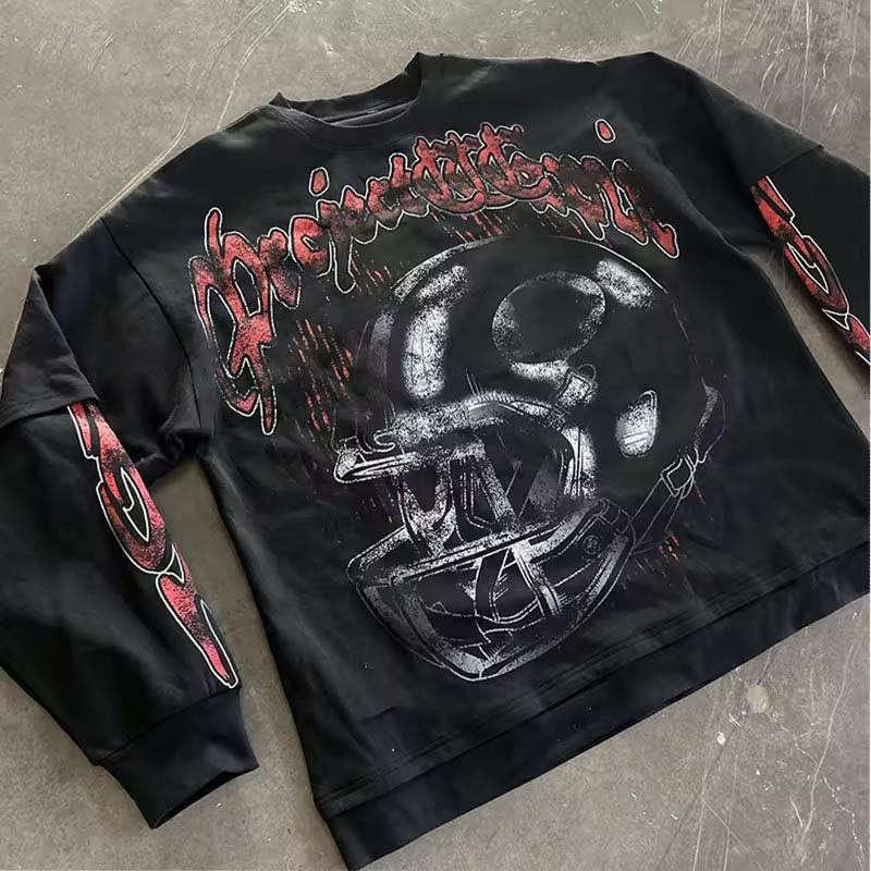Camiseta de manga larga con estampado DTG y logotipo personalizado para hombre, Camiseta de algodón lavada con ácido de retazos de doble capa Vintage ajustada