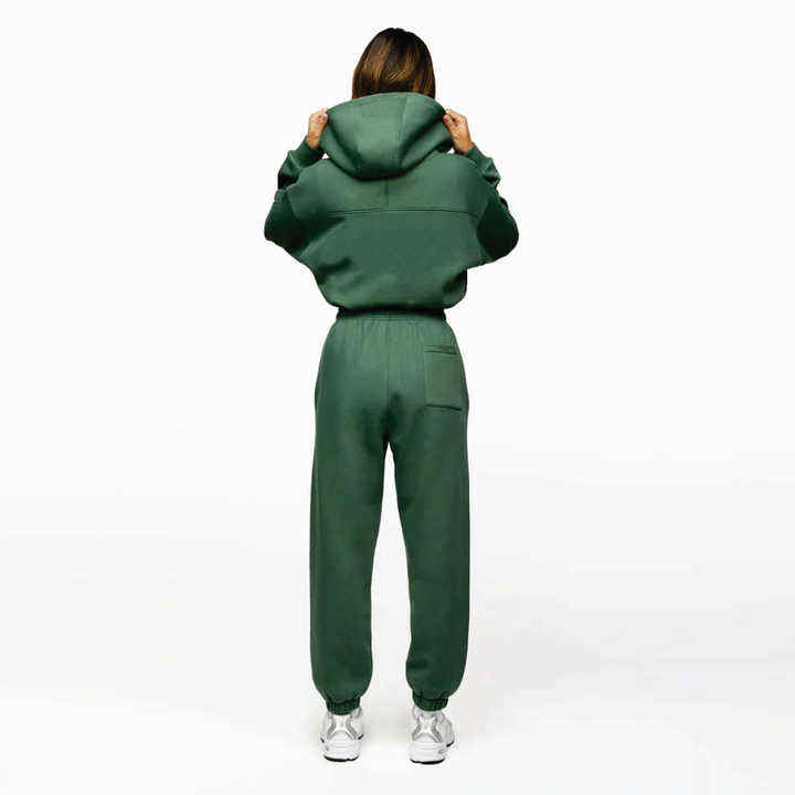 Conjunto Deportivo de 2 Piezas con Logotipo Personalizado, Sudadera con Capucha Corta y Pantalones Deportivos Cómodos con Bordado de Toalla, para Mujer